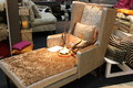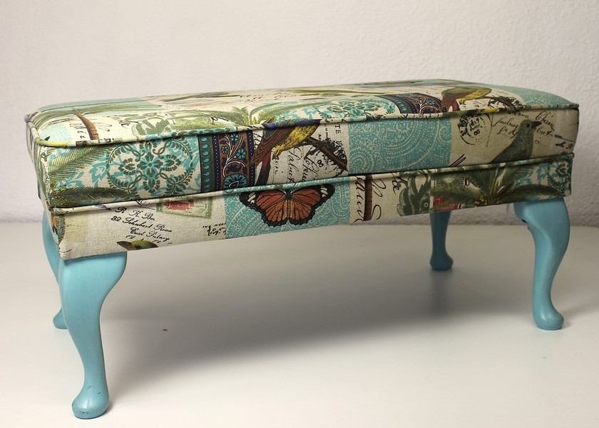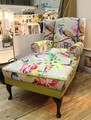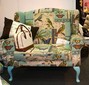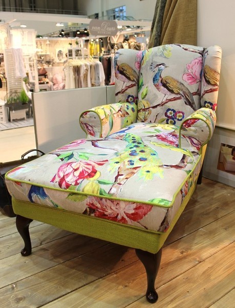Longchair mit Dackelbeinen, offen, Stoff Pfau